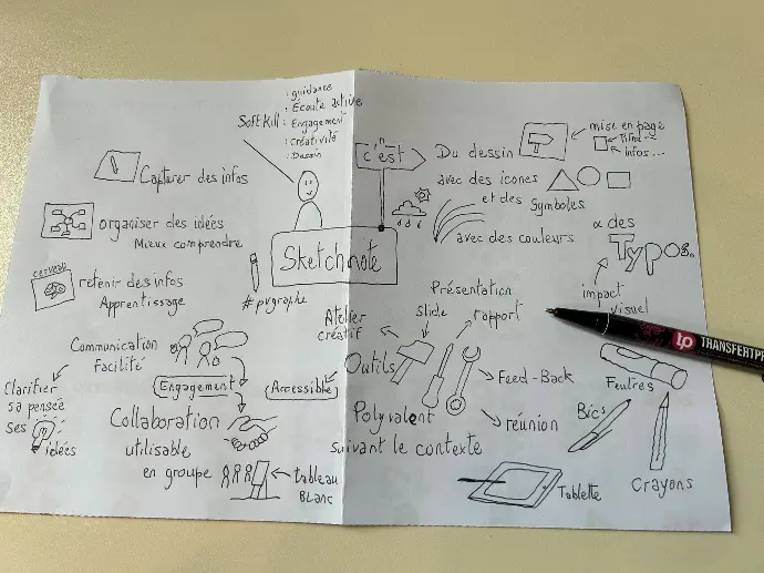 - Outil accessible: Le sketchnoting peut être pratiqué par tout le monde, quel que soit son niveau artistique.